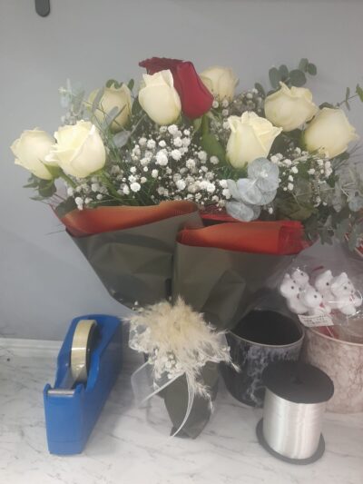 Beyaz Gül Buketi 15 Adet ve 1 Adet Kırmızı Gül, 15 beyaz gül ile 1 kırmızı gülün zarif kombinasyonundan oluşan özel bir aranjmandır. Beyaz güllerin saflığı ve kırmızı güllerin tutkusunu bir araya getiren bu buket, romantik ve anlamlı bir hediye seçeneği sunar. Hem özel günlerde hem de anlamlı anlarınızı taçlandırmak için mükemmel bir tercihtir.