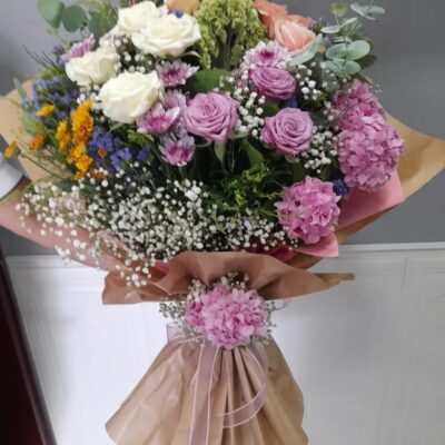 VIP Tasarım Pembe Beyaz Gül Buketi